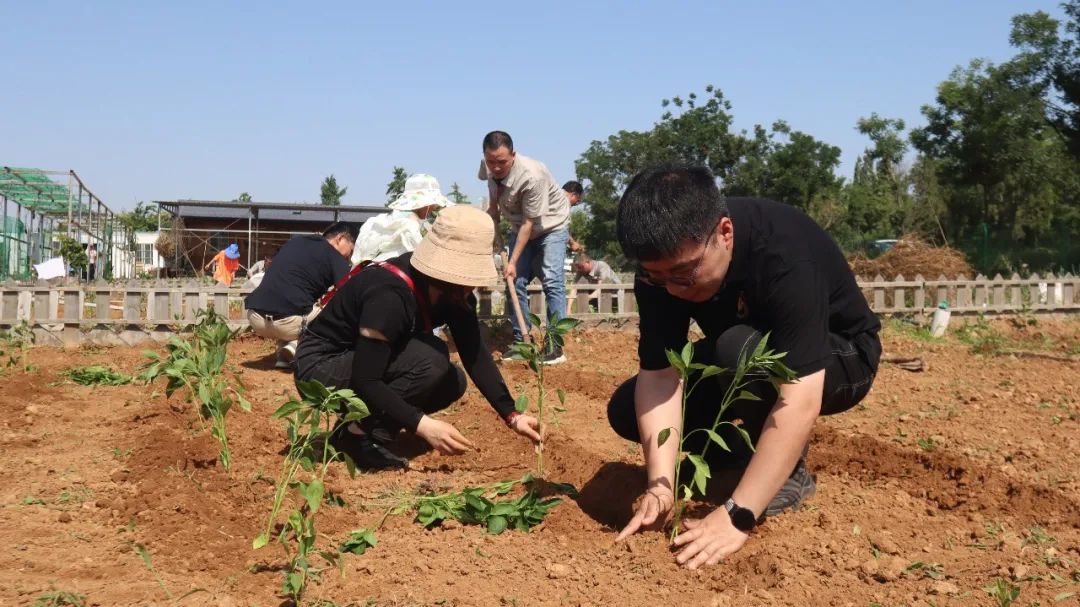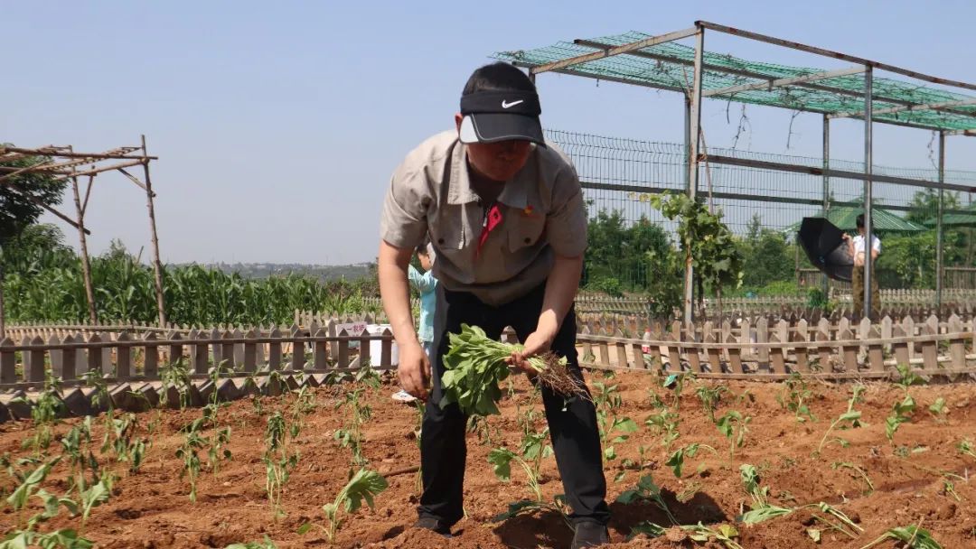 同志們分工協(xié)作,在有經(jīng)驗(yàn)的老同志指導(dǎo)和示范下,依次開展松土、起壟、插秧、澆水、培土等工作。汗水滴灑在泥土里,歡聲笑語(yǔ)回蕩在空氣中?;顒?dòng)中,還有不少黨員帶著孩子來到現(xiàn)場(chǎng),讓祖國(guó)的下一代在了解種菜過程的同時(shí),體驗(yàn)勞動(dòng)果實(shí)的來之不易。