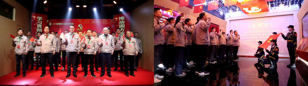 在工作人員的講解下,大家認真聆聽圓方集團“六課教育”、“四五”創新工作模式、“五新”非公黨建工作方法,以及其他非公黨建新體系、新機制,深刻領悟到“黨組織就是靠山”、“黨建也是生產力”。在二十大精神沉浸式主題展館,大家走進長廊廳,通過欣賞舞蹈、唱紅歌、誦讀二十大精神、現場答題、重溫入黨誓詞等互動環節,感受到一堂“網紅薛書記”帶來的生動黨課。